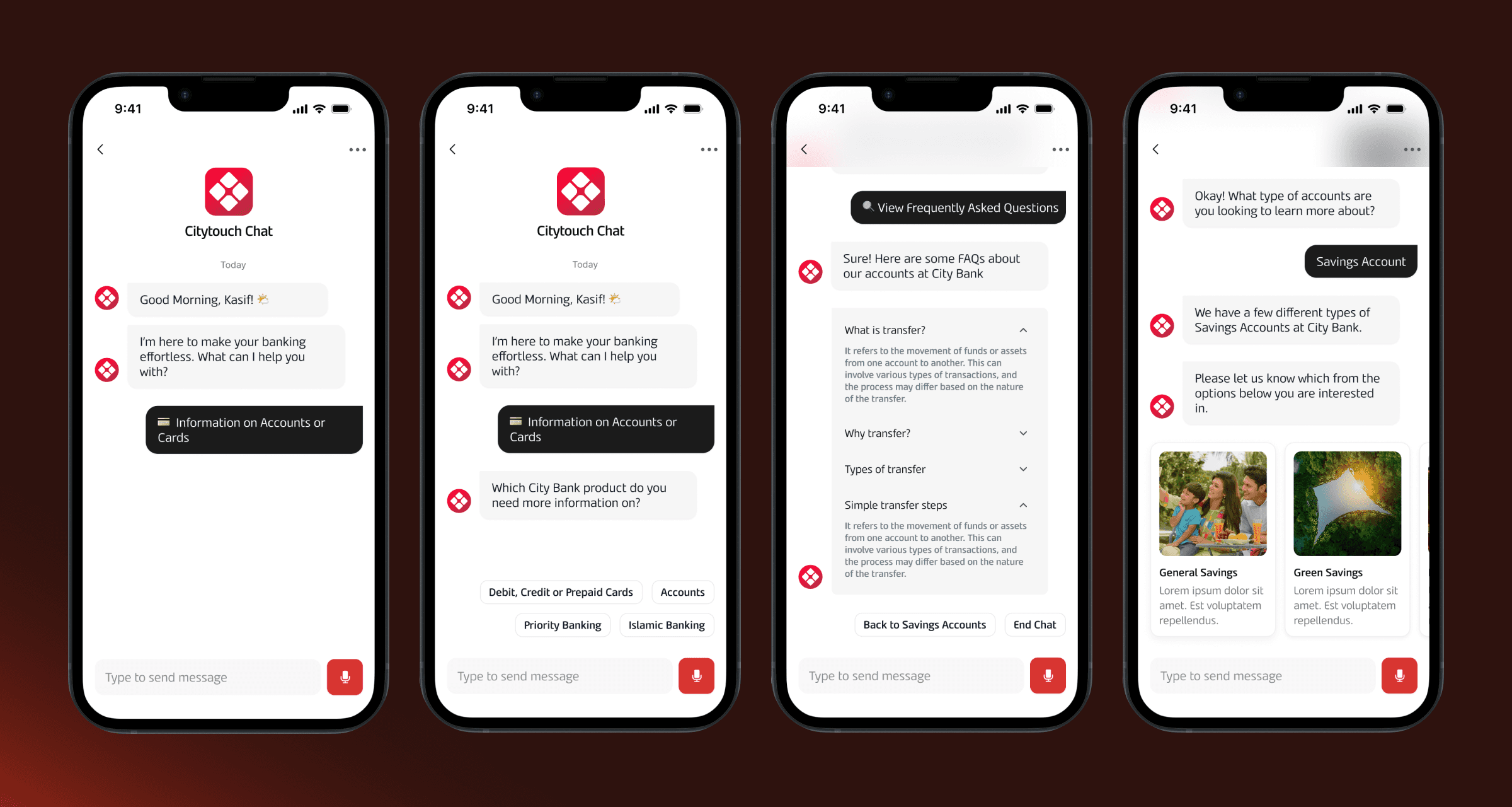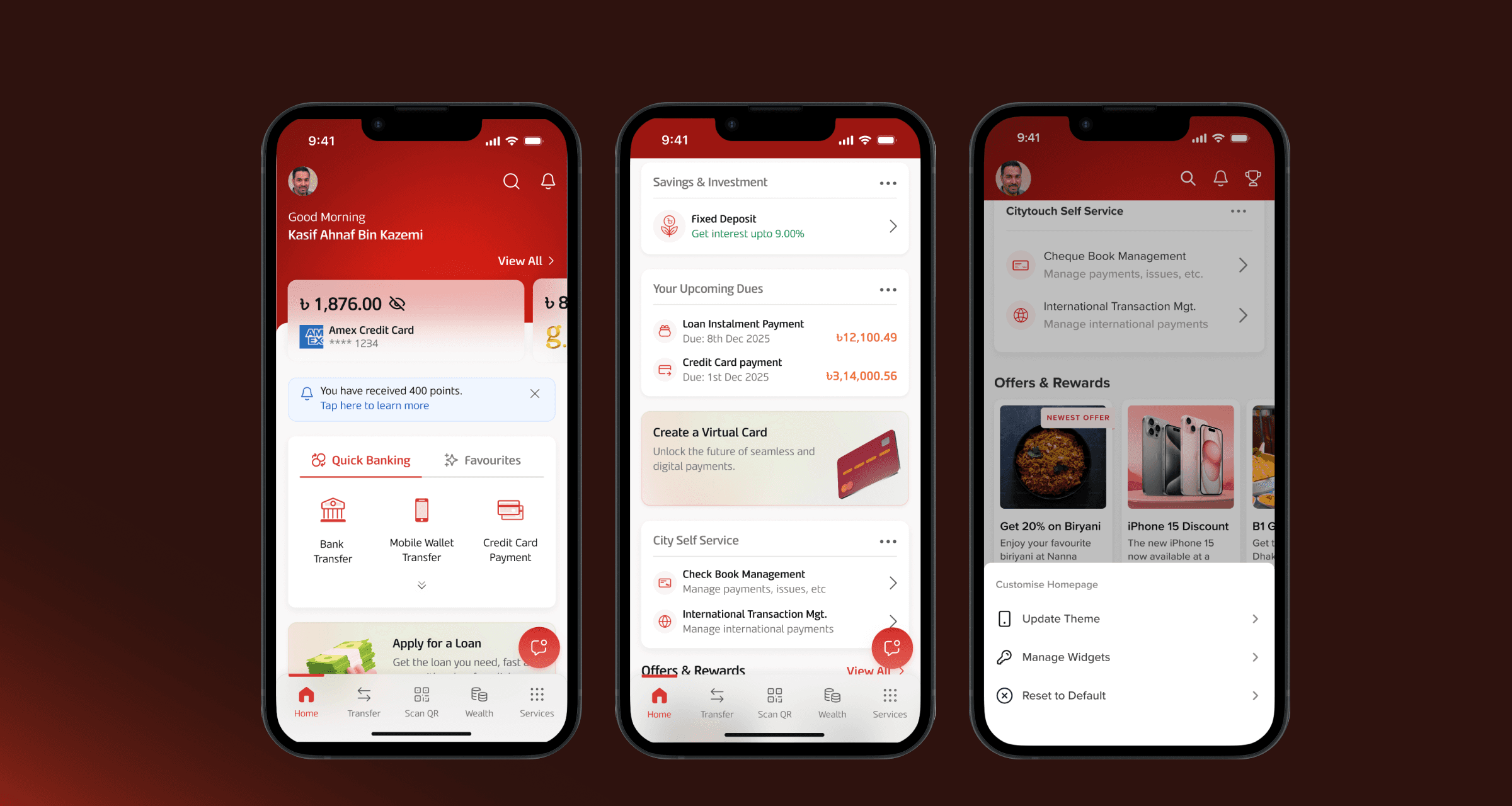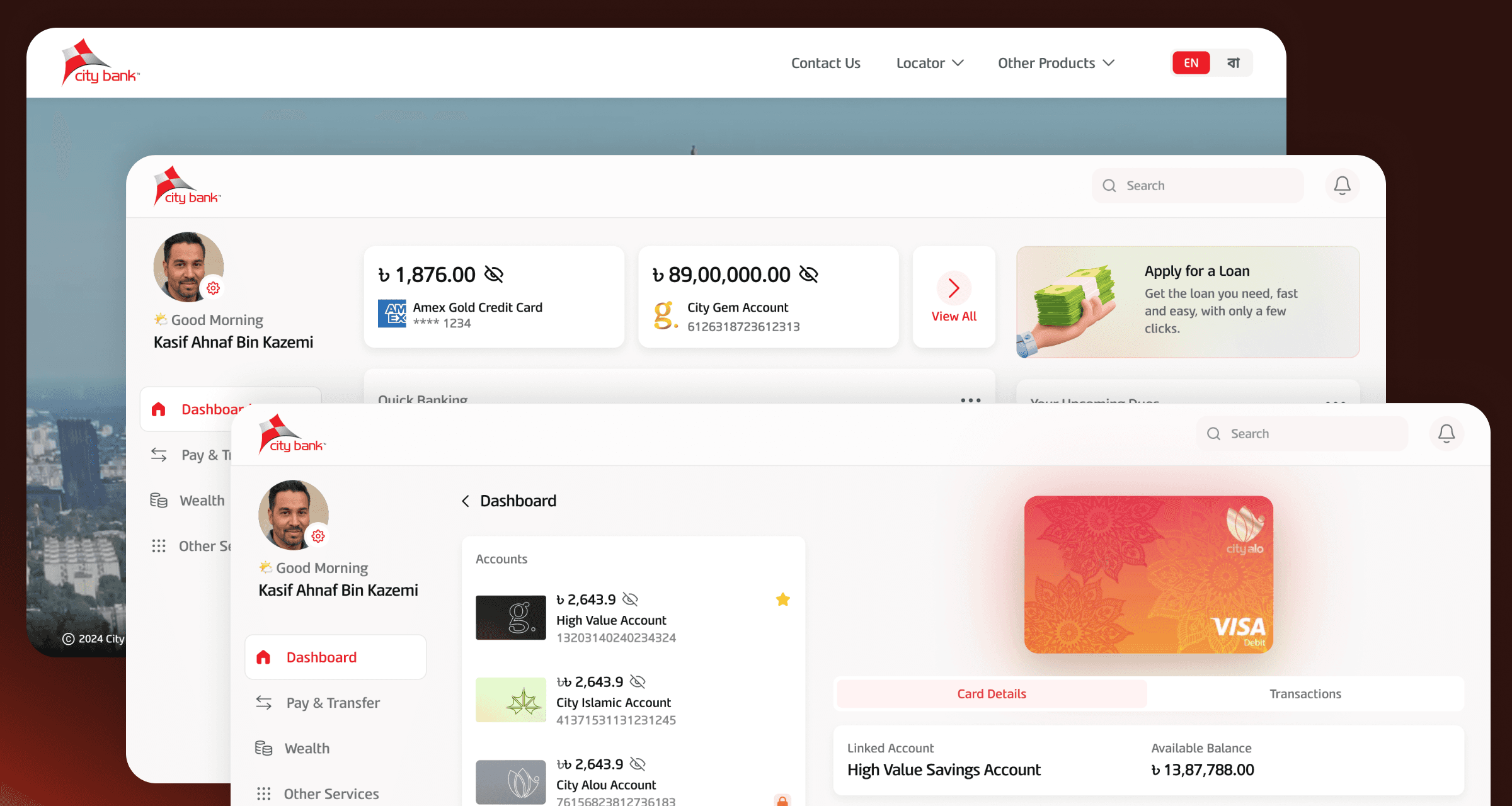 Brand Specific UI: Created with the premium look and feel carried by City Bank at all customer touchpoints.