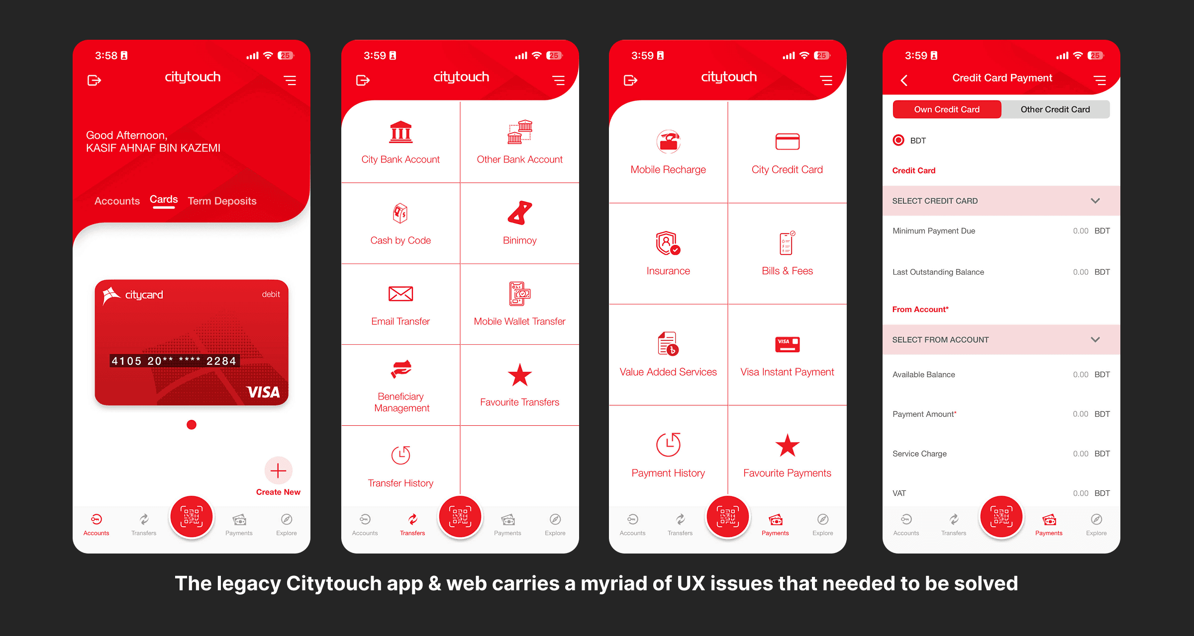 Despite its robust feature set (including Cash by Code and MFS transfers), the legacy Citytouch app faced several user experience hurdles: